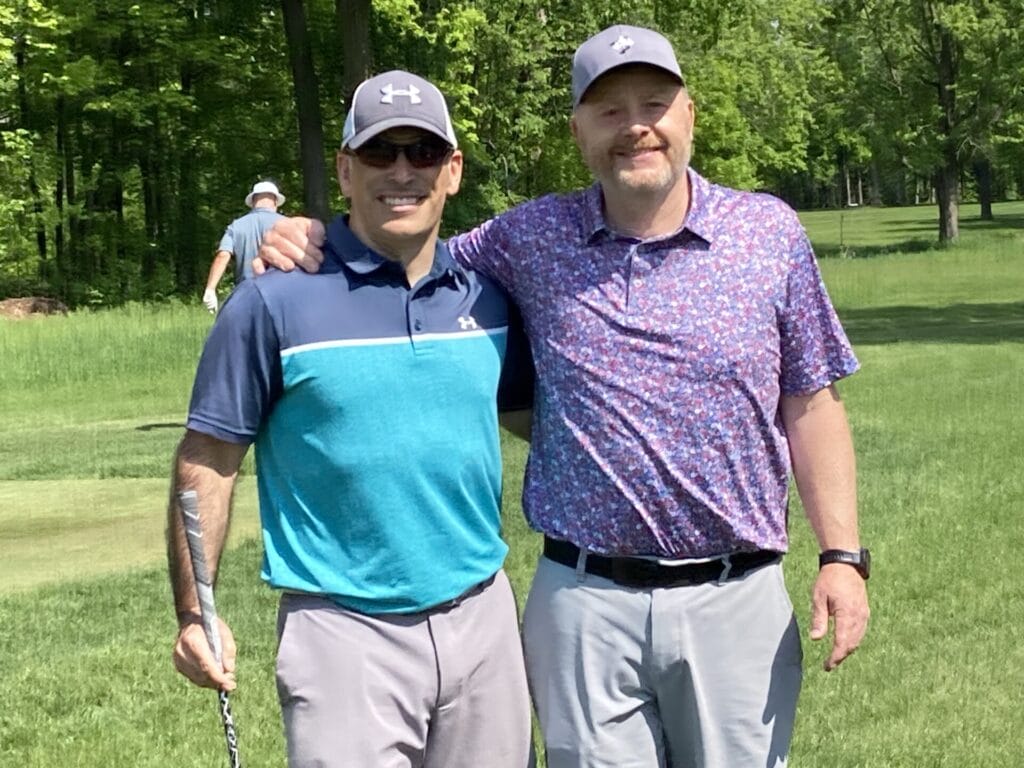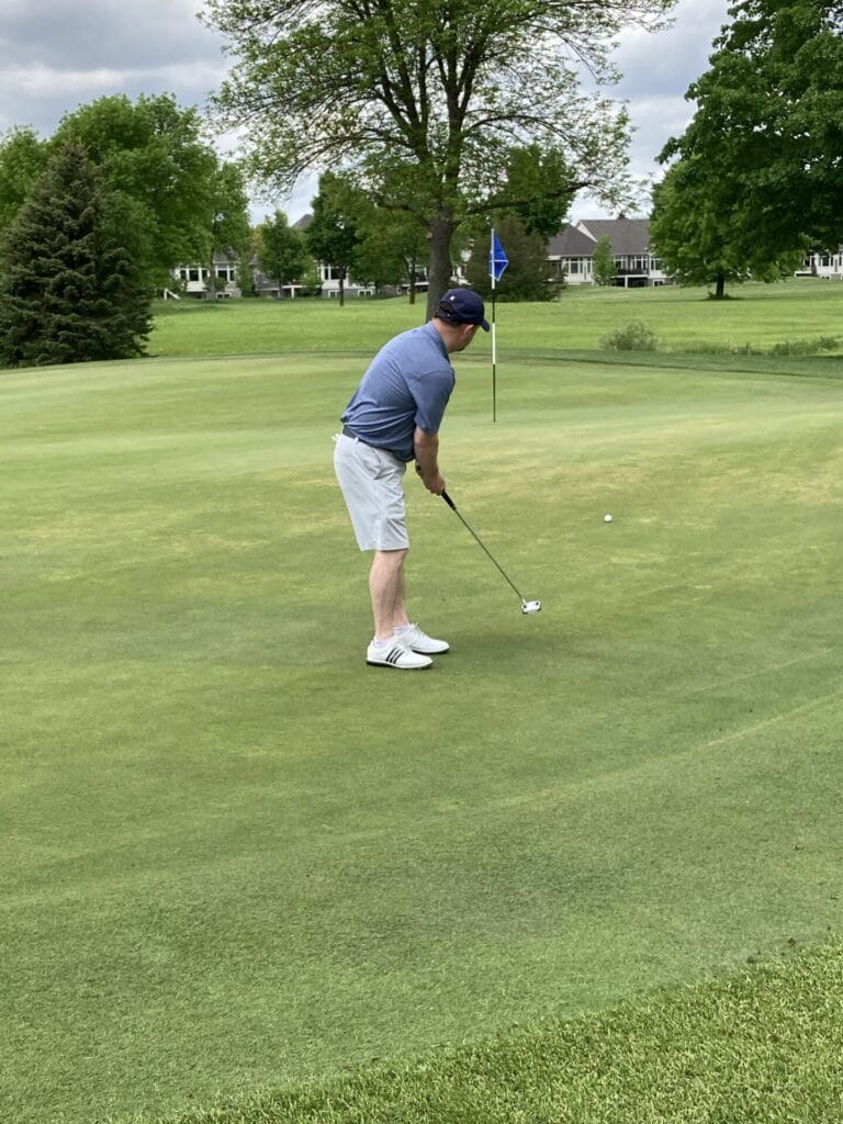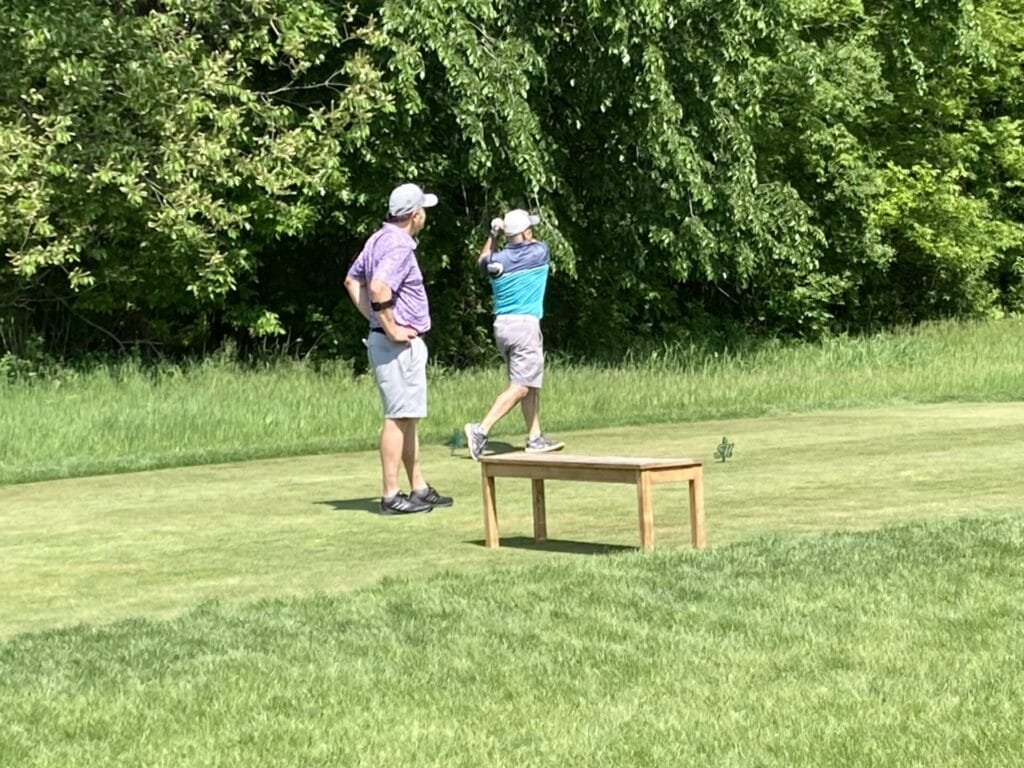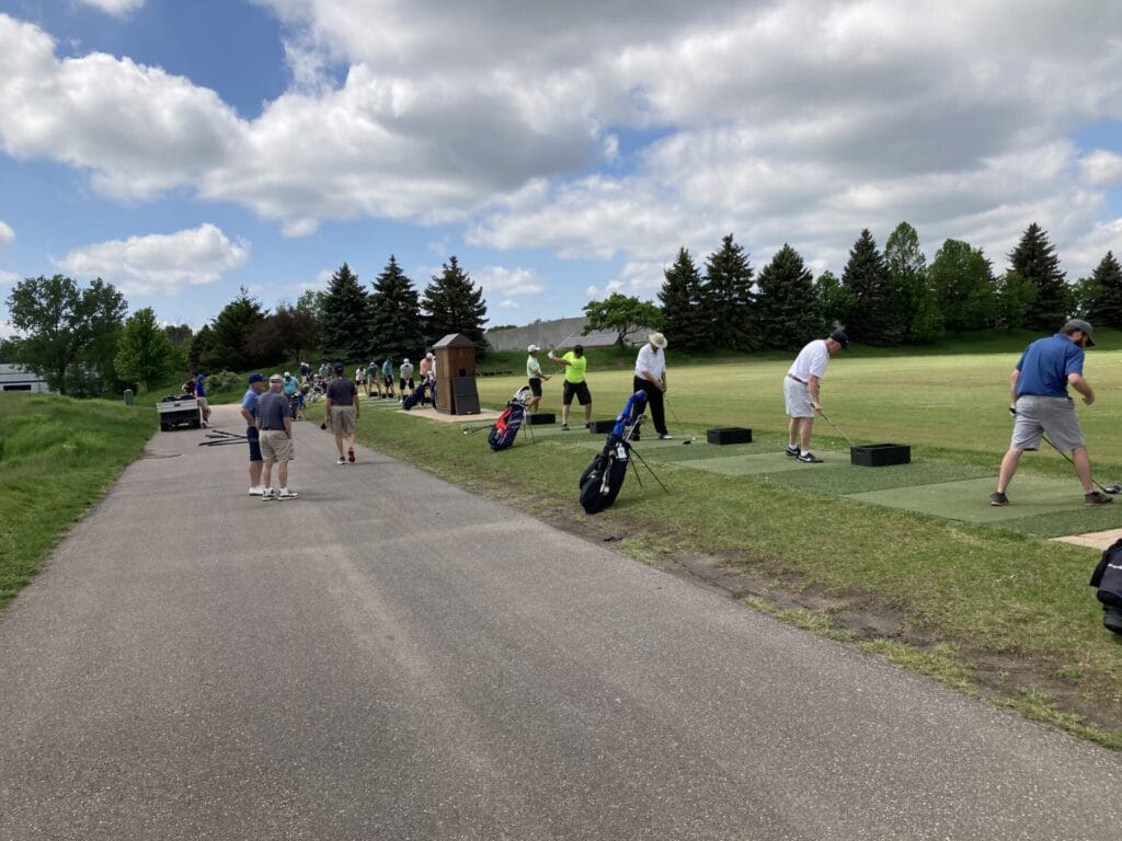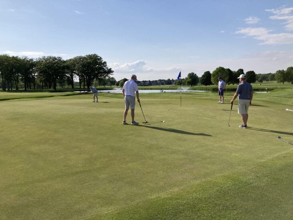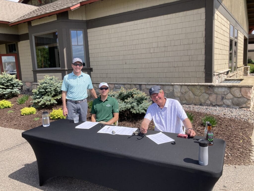 Tournament Coordinators Phil Jirsa and Mark Schmidt. Thank them when you see them.The check in boys. Phil Jirsa, Tom Schaurerman and Pat Logan. Thank them as well.Pre Tourney warm ups.Just a bit outside.Pre tourney putting.Phil Jirsa, Gary Mullen-Schultz, James Hove and Eric PetersenA typical uphill, downhill 10 foot bender.One of these guys made a 30 footer on 18.Jamie Kingston and Brian Kaul.Look at those skies!Jamie Kingston tees off on 14. BK analyzes the technique.The bird sings on #6.Low Gross winners putting on #1.