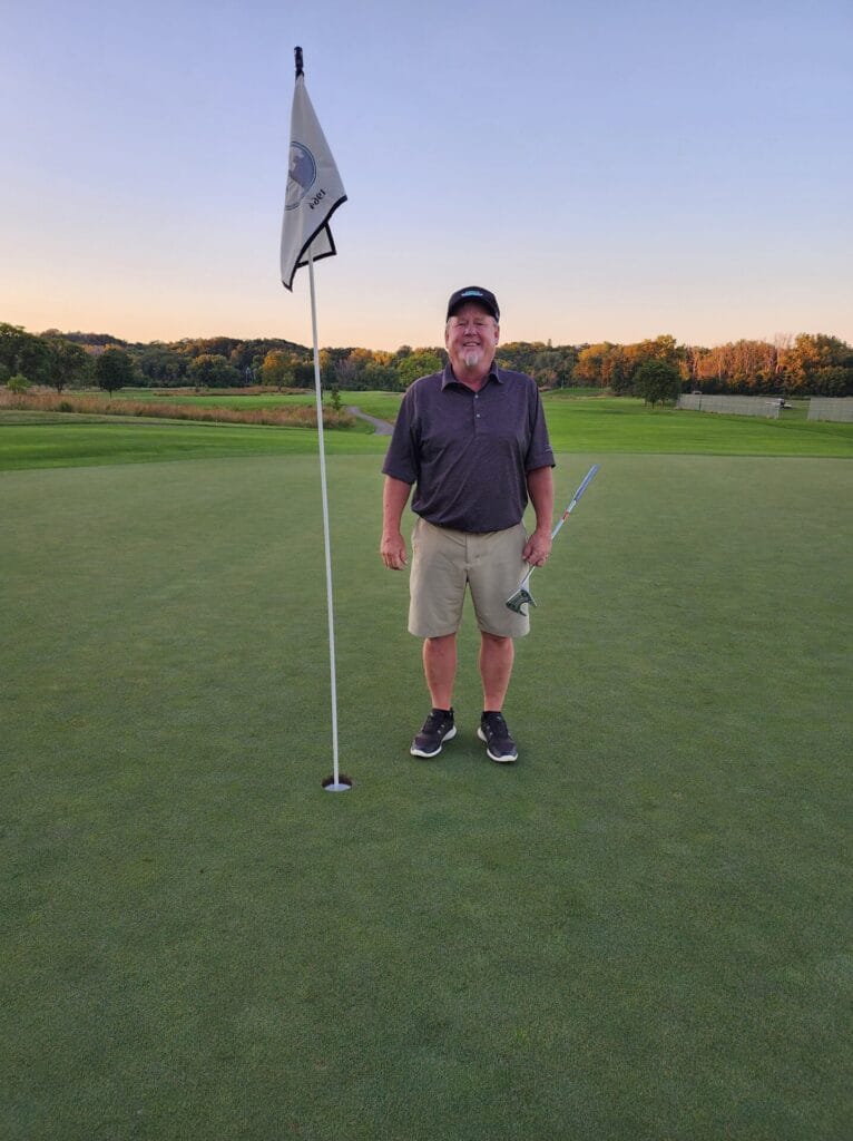 What excitement! As Denny got ready for his 4th shot (remembering he had a stroke advantage) the crowd went completely silent. His chip/pitch went past the hole and left about a 10 footer comeback putt. The putt missed and Denny holed out with a 6, net 5. Now it was up to Tim to sink his five footer for the win, or miss for a tie with an ensuing playoff. He confidently centered his aim and, as champions do, sunk the putt for a 4 to become the 2024 Ed White Champion.