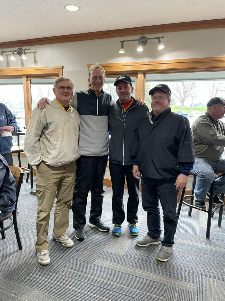 The MPGA’s annual President‘s Tournament was held on April 23 at Majestic Oaks. Challenging conditions featured rain showers throughout the afternoon, gusting wind, temperatures hovering around 50 degrees, and some unsightly winter kill. The BMC team, consisting of Tim Smith, Dick Helde, Mark Schmidt and Greg Wright, placed first, besting second place by four strokes. Dick Helde won the separate event for club presidents.