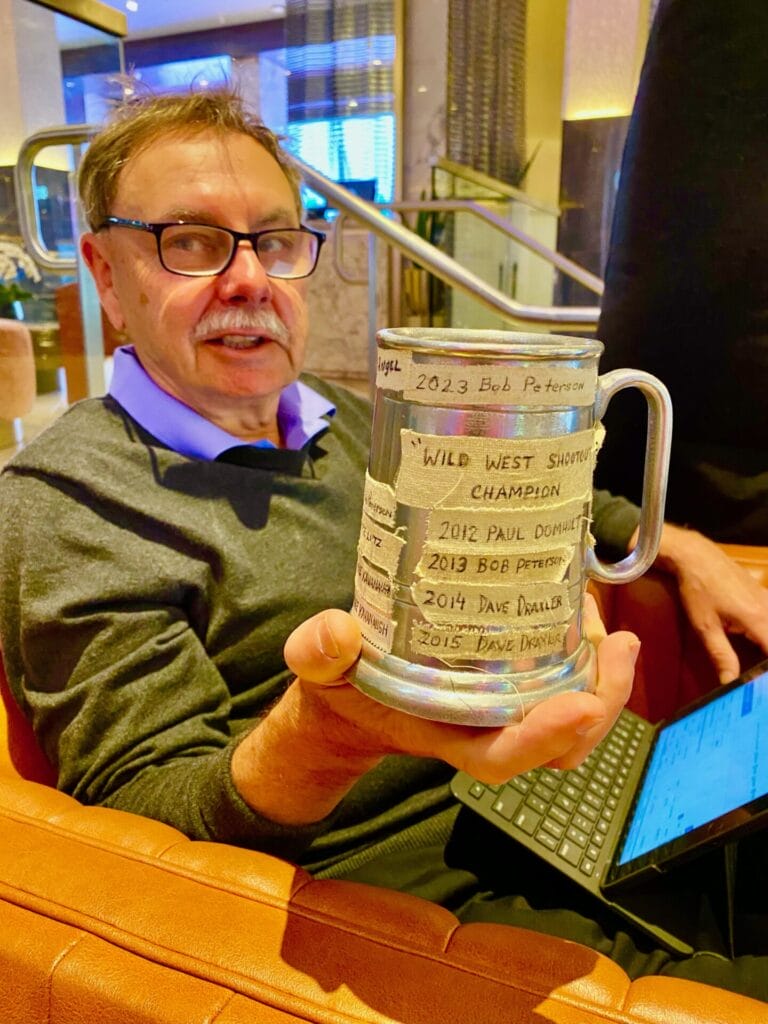 Their goal: to win the coveted Wild West Shootout Trophy.  And while casual observers may assume that the rather ungainly appearance of the cup itself (check out the photo below) suggests a less-than-serious competition, they’d be well off the mark.  Because the outward appearance of the trophy belies the elevated status of each year’s winner– at least in the eyes of his fellow competitors.